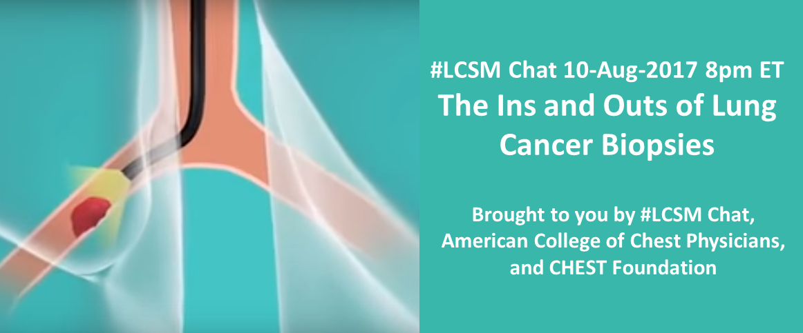 For theAugust 10, 2017 chat at 8 PM ET, #LCSM Chat is partnering with the American College of Chest Physicians and CHEST Foundation to discuss lung cancer biopsies. We’re excited to see what this partnership will bring to the chat!