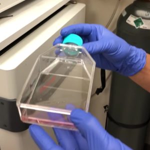 One way researchers study cancer is by using “cancer models.” Cancer models are clumps of living cancer cells that exist either in a lab dish (see image above), or in animal models such as mice. Sometimes these models also include other living cells from the host environment. It’s not exactly the same as studying a living cancer in its human host, but it does allow researchers time to study the biology of a cancer and test different treatments against it.